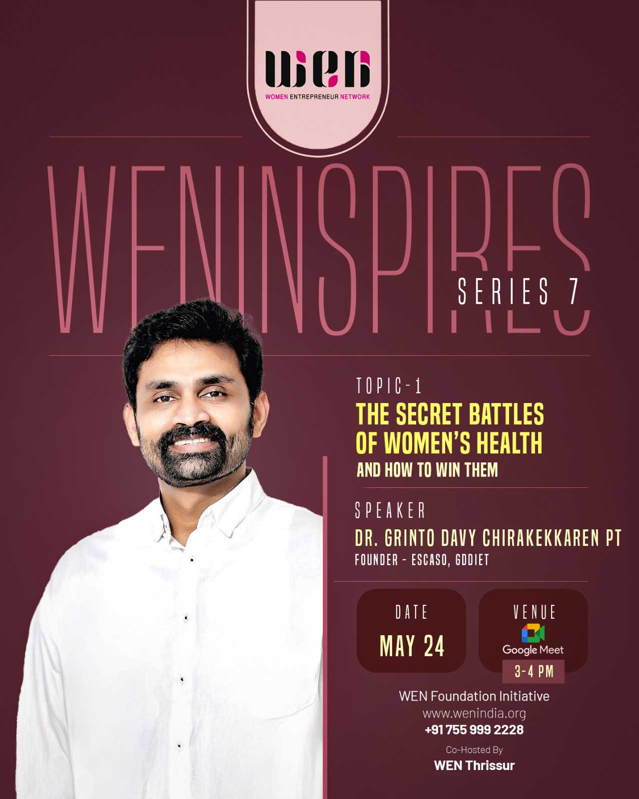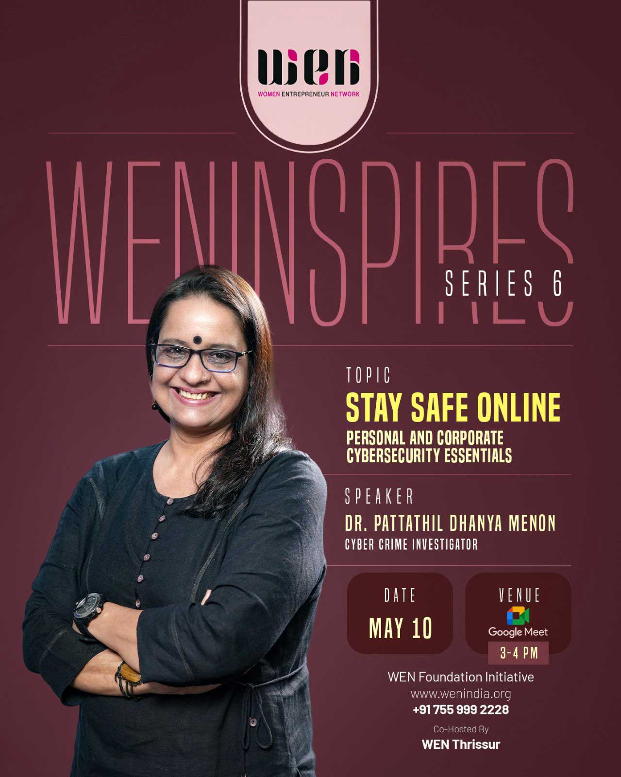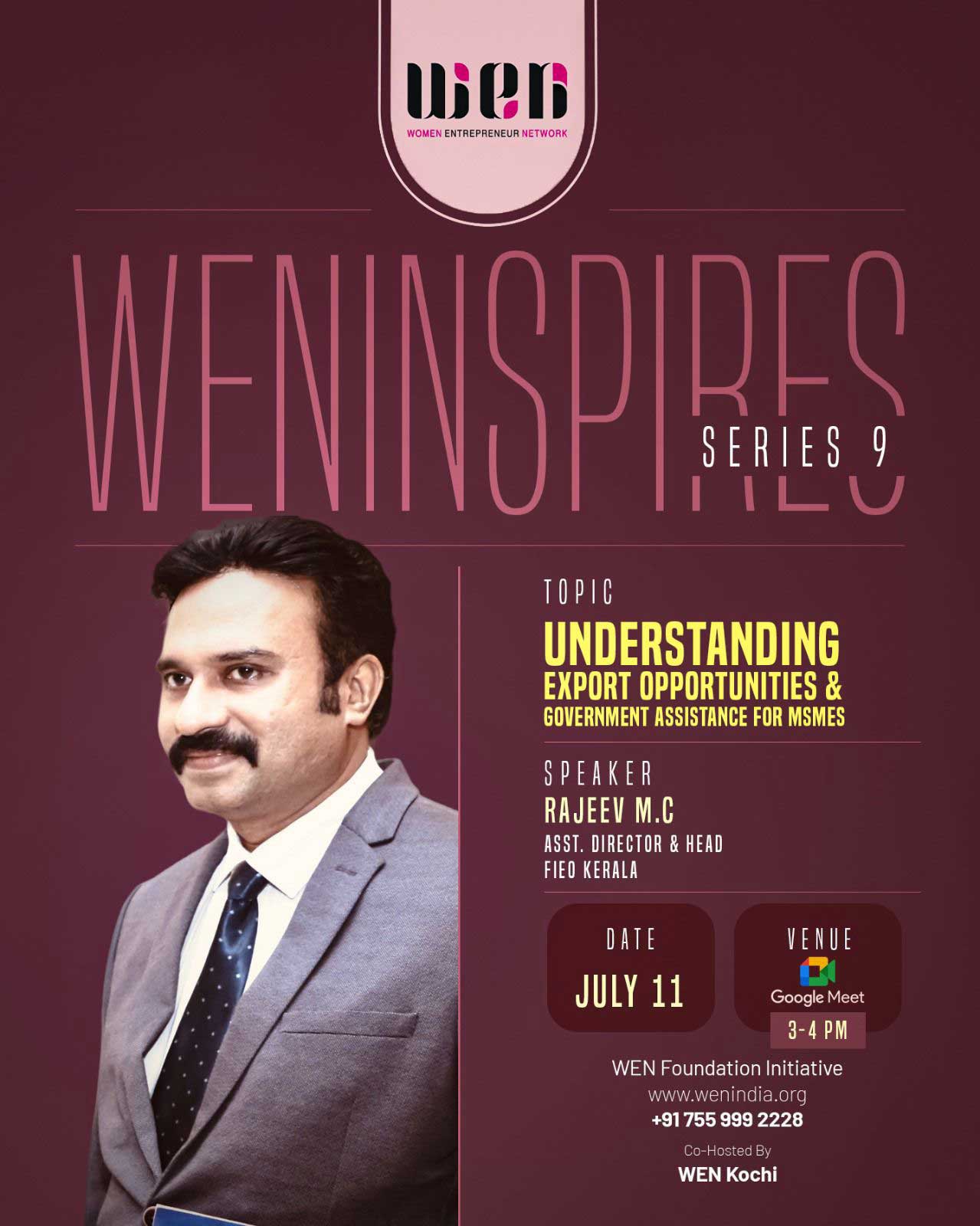 The WEN Inspire Series continues to empower members with valuable knowledge and insights. This quarter, the series featured a range of engaging sessions, including "Understanding Export Opportunities and Govt Assistance for MSME" by Shri Rajeev MC, "Personal Branding" by Sourabh Goyal, "Secret Battles of Women's Health" by Dr. Grinto, and "Cybersecurity" by Dhanya Pattathil. These sessions not only enhanced the knowledge of WEN members but also equipped them with practical skills and strategies to navigate the business landscape with confidence.