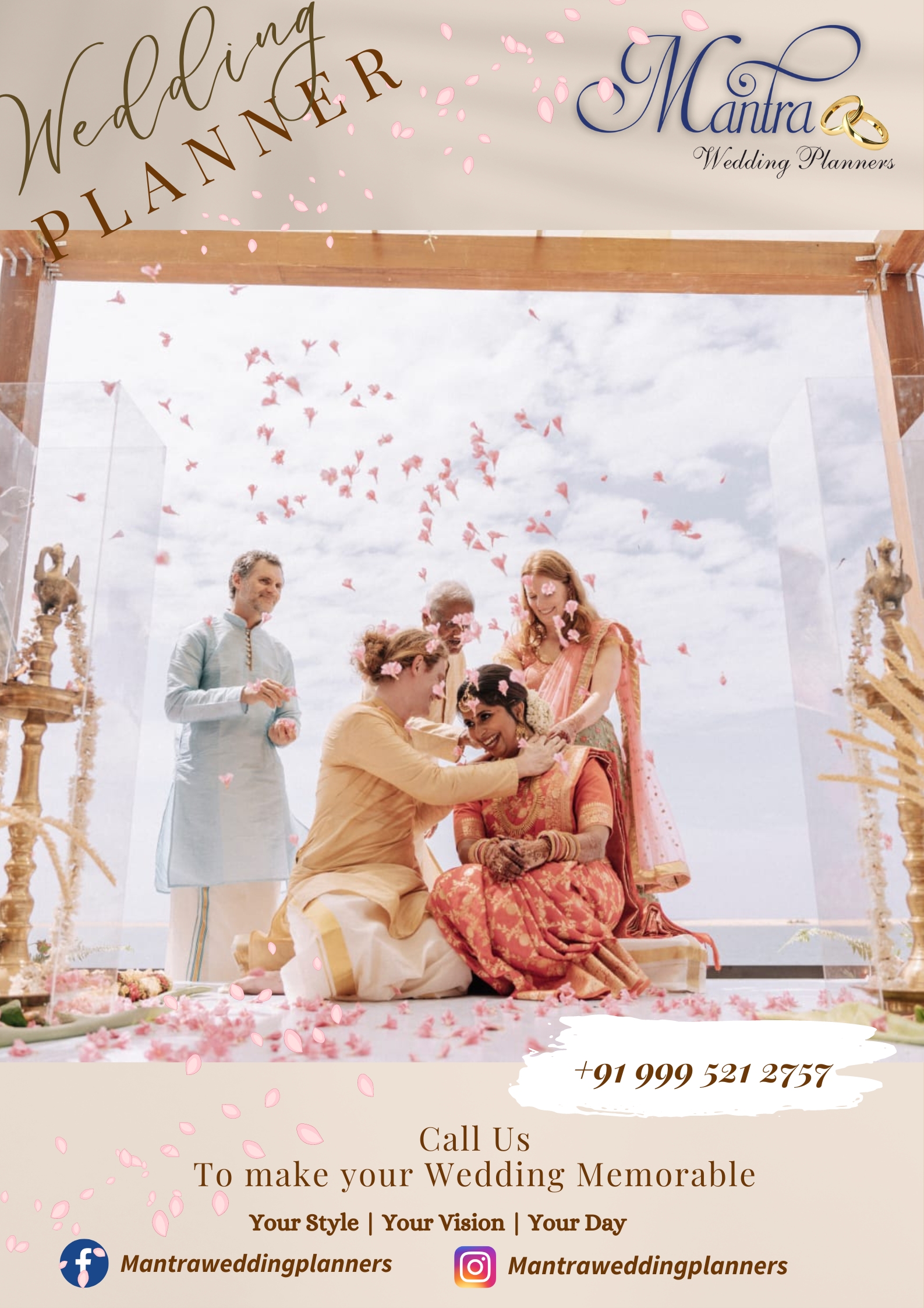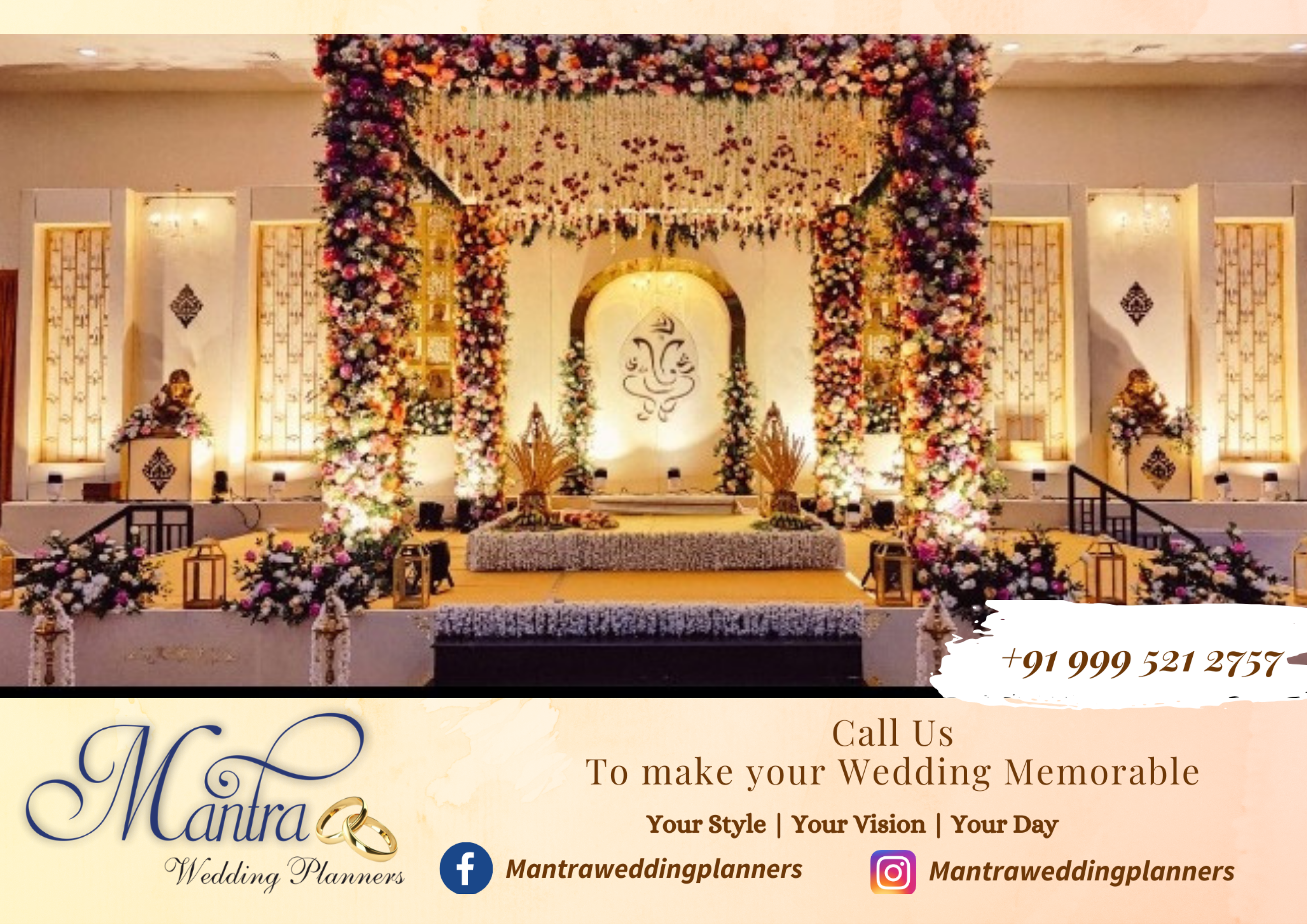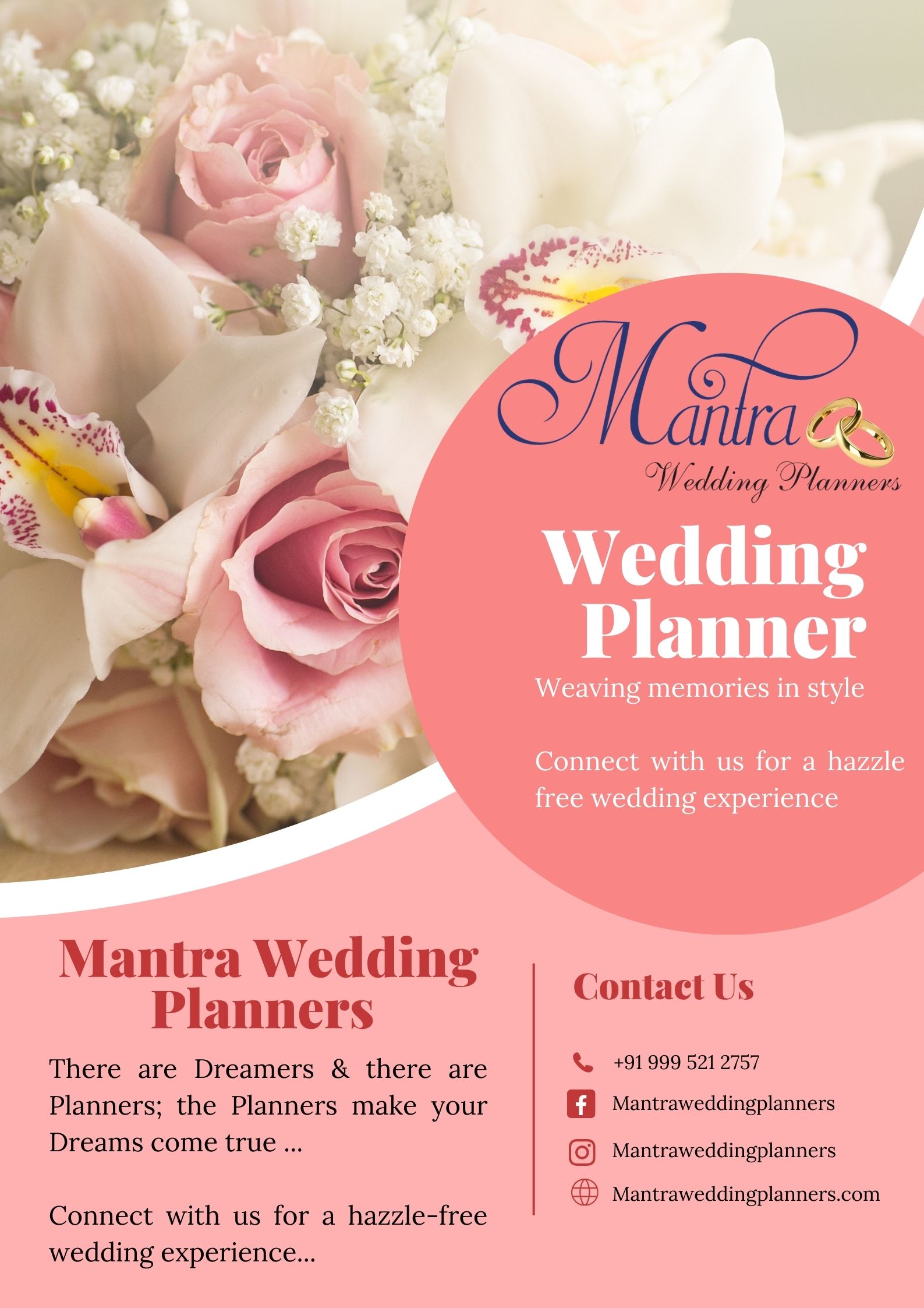 At Mantra Wedding® Planners we always cherish at heart the thought that your Wedding Day should not only be grand, but very special that bear fond remembrances for a lifetime. We make your Wedding a beautiful reality by fabricating creative ideas that stays within your budget by carefully planning and executing everything from scratch to wrap-up. Our Wedding Planners promise perfection and completeness in the tasks of planning and organizing your big event. We have a group of professionals allocated for each different task, starting from the conception of Theme/Ideas, Venue Decor, Catering, Photography, Videography, Guest Management etc. We understand the hassles and challenges of conducting an elaborate wedding and hence, include everything in the platter so that you can enjoy a full course.