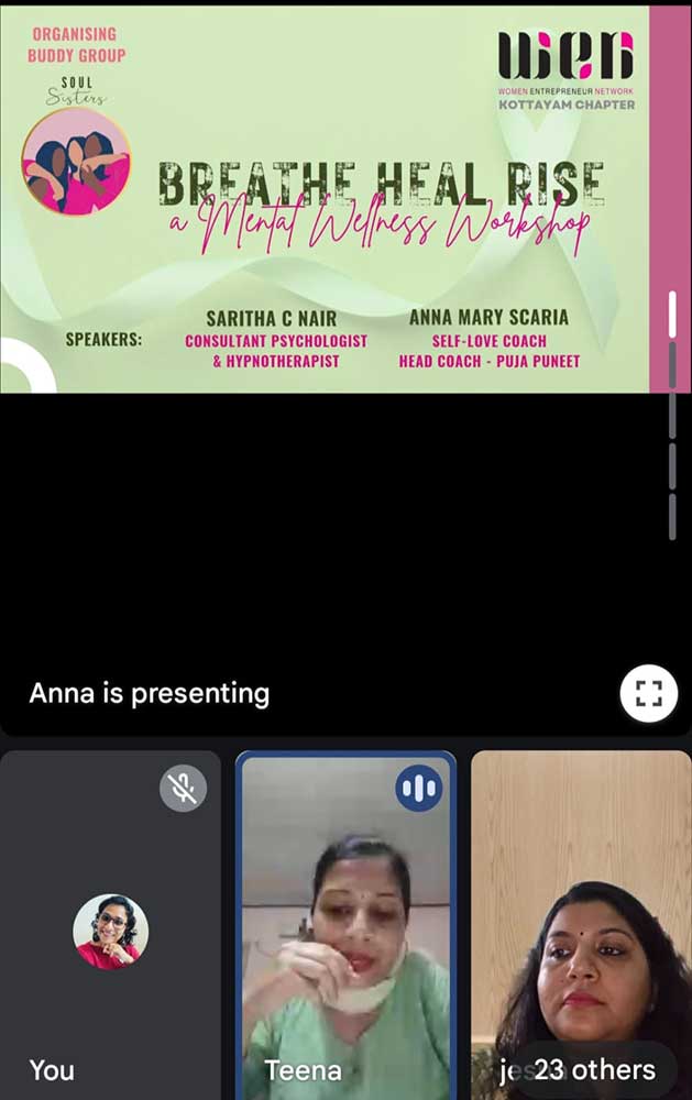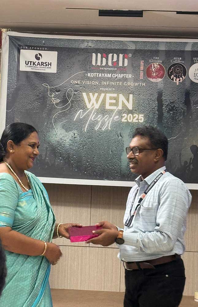 On June 18, 2025, the WEN Kottayam chapter marked a significant milestone with its first official offline gathering, WEN Mizzle 2025. The event was held at Hotel Aida, Kottayam, from 3:00 PM to 6:00 PM, and was coordinated by Buddy Groups - Hustling Honeys, Pink Warriors, and Dream Catchers, with sponsorship from Utkarsh Bank.